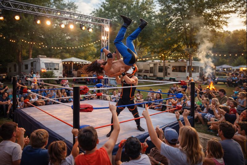 Préparez-vous à vivre toute l’intensité d’un spectacle de lutte professionnel directement au camping !