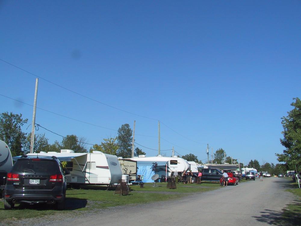 Site de type voyageur ou visiteur court séjour,  Site trois services:  Eau, électricité  15 amp, 30 ampères (50 amp aussi disponible sur certains sites, veuillez le mentionner) et égout. Grand terrain de 50 pieds par 35 pieds.  Stationnement sur gravier et terrain entièrement gazonné.  Terrain moyennement ombragé.